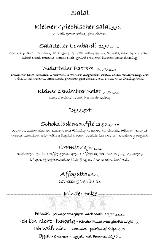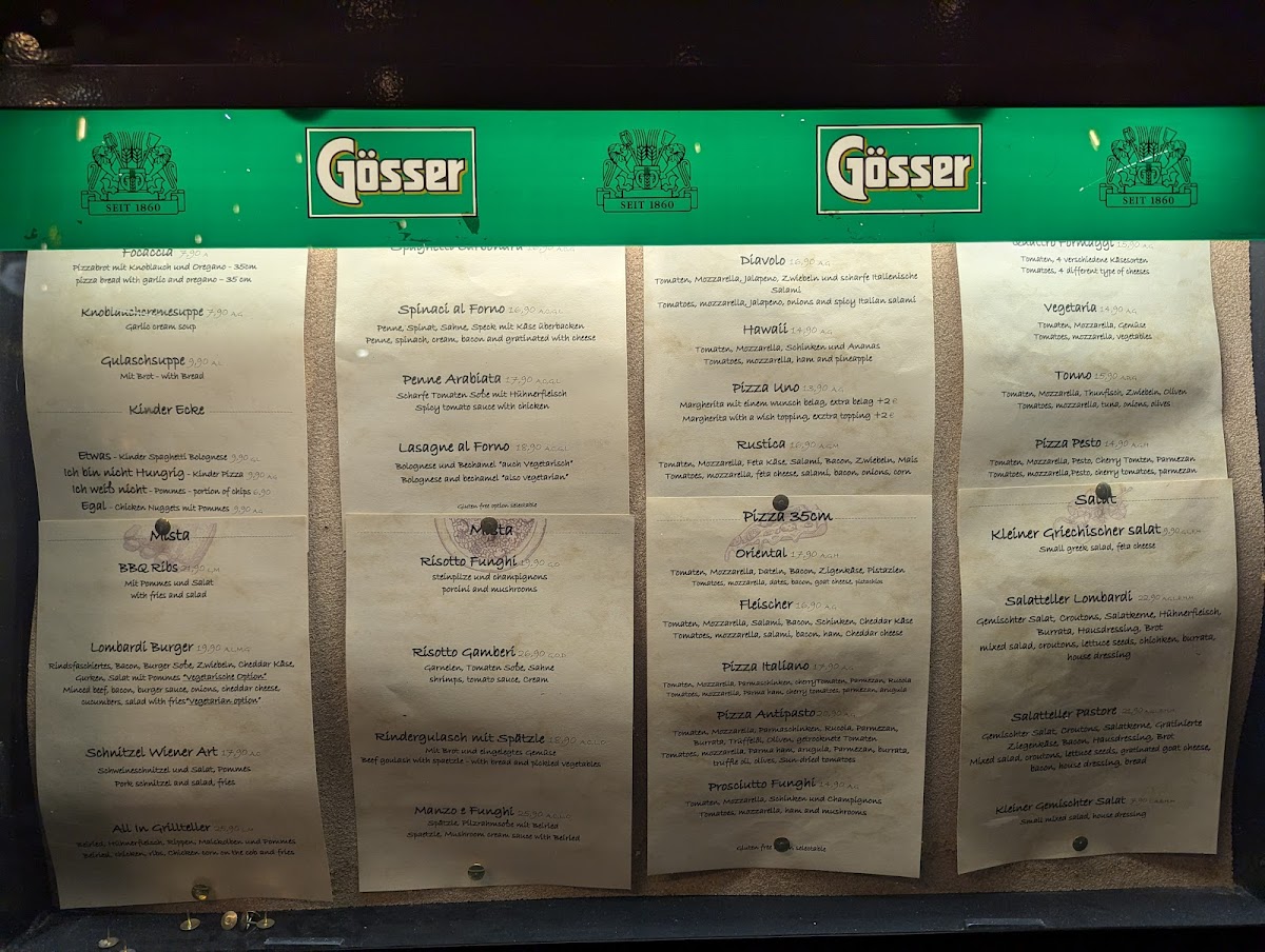 The menu at Lombardi Restaurant offers a relaxed blend of Italian, American, Austrian, and Mediterranean influences, making it a versatile spot for both casual meals and more filling dinners. From comforting pasta dishes like lasagna and penne arrabiata to hearty options such as pulled pork burgers and classic Austrian rippchen, the selection caters to a range of tastes and appetites.